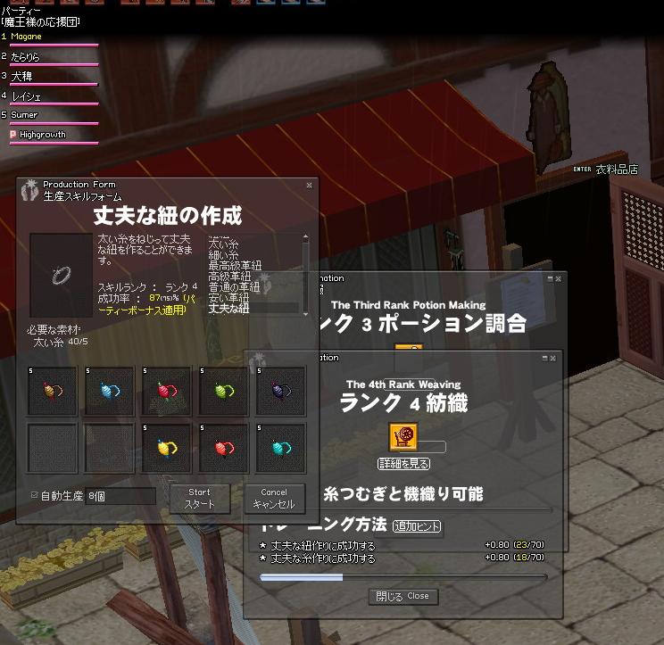 んで調合は満足したのでその勢いで紡織(4ランク)をやることにしました。