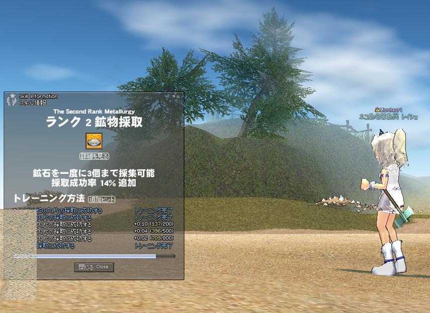 と言うのもレイシェの鉱物採集が1目前の所まで修練が進んでいるので、