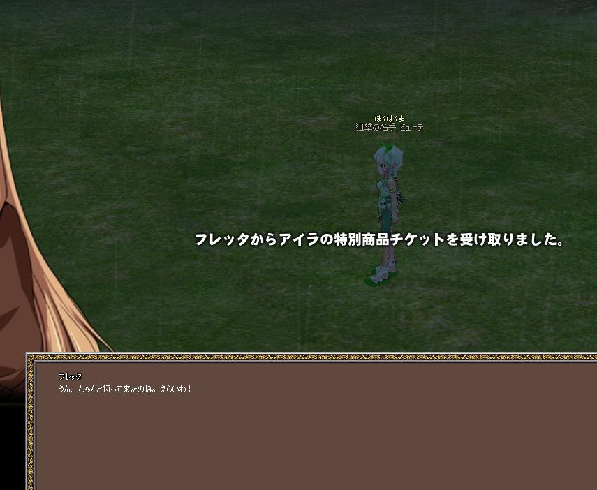 空の宝箱→フレッタ→フレッタのおつかい→アイラ秘密商店の流れ。