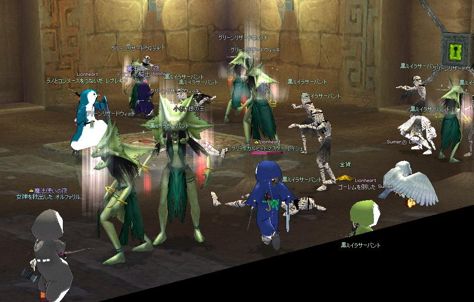 緑玉のボス部屋にてガゴ集団に危うく全滅しかけましたがどうにかなりw